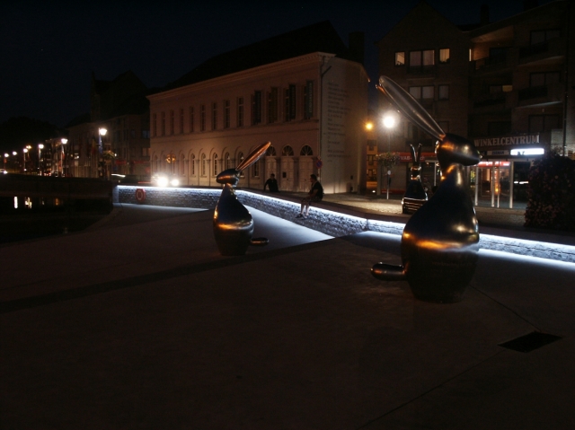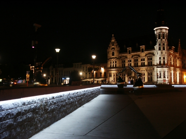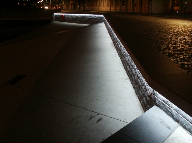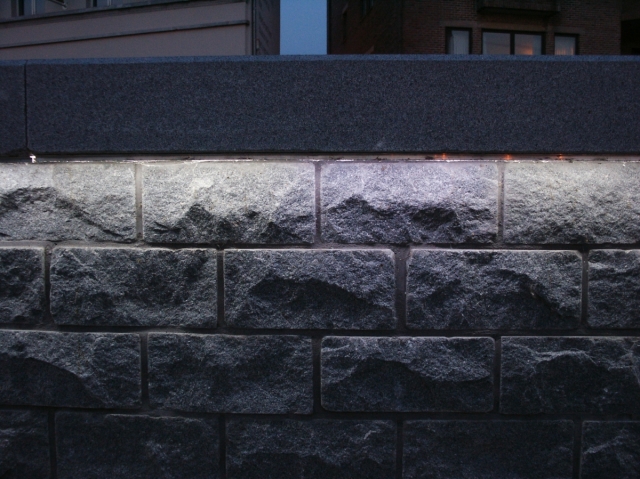 LEDline Reihenbeleuchtung in Sitzmauer Ort: Lokeren, Belgien Produkt: LEDrail kaltweiß