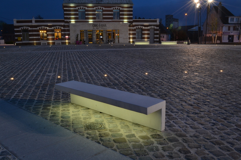 LEDlines integrated into concrete seating element by Urba Style http://www.urbastyle.com