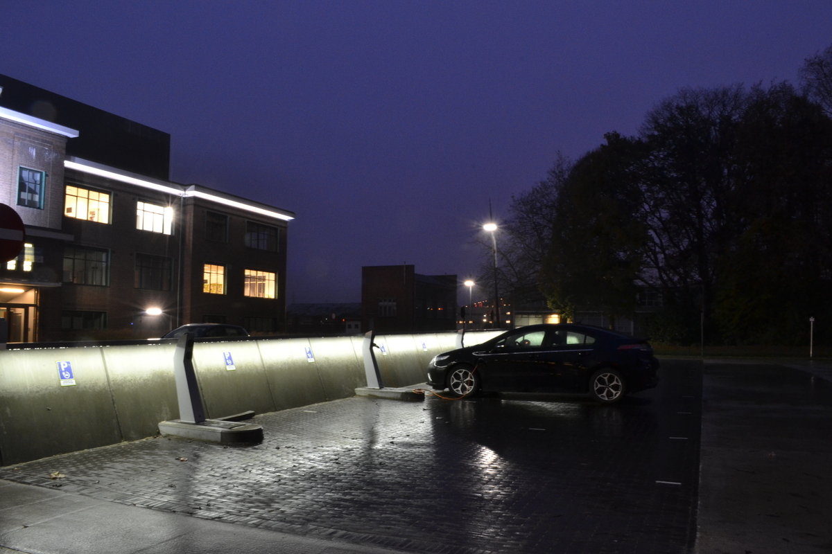 GREENVILLE business centre : facade lighting with LEDline MULTI (multi-functional installation profile for our LEDline) and indirect orientation lighting in the car park (integrated in concrete walls).